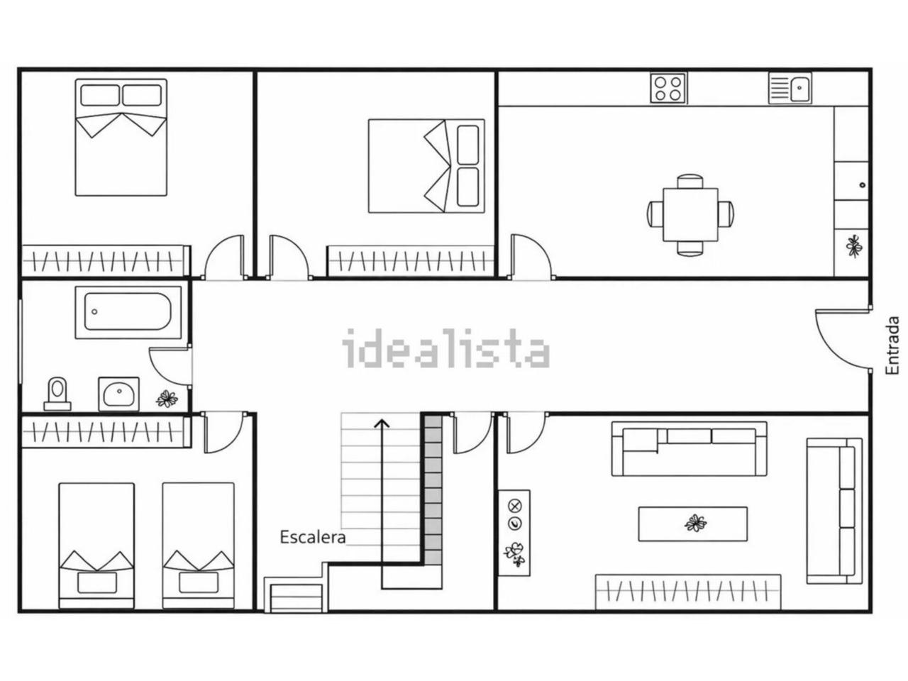 -Planta primera (96m2):Hall de entrada, amplio salón, cocina con zona de office, dos dormitorios con camas de matrimonio, un dormitorio con camas gemelas y cuarto de baño completo con bañera.
